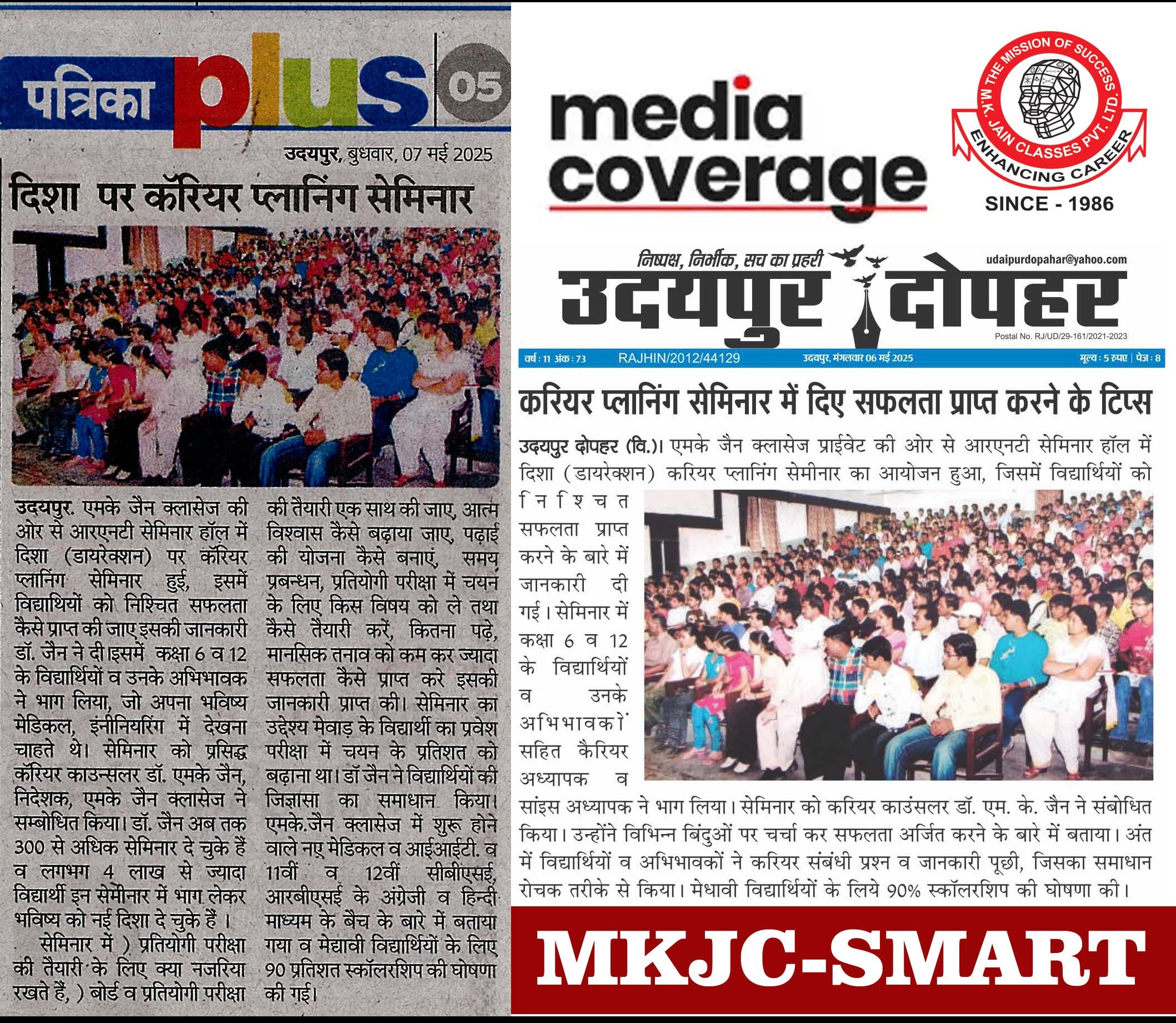 MKJAINCLASSES PVT.LTD UDAIPUR Why MKJC ? - 40 Yea...
