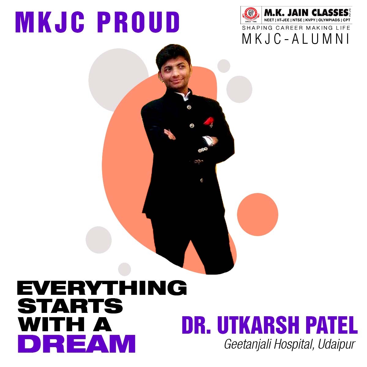 MKJC-ALUMNI , MKJC PROUD |Dr. UTKARSH PATEL #MKJC- PRODUCED #800 MEDICOS & #16000 ENGINEER'S SO FAR.... Top choice of rankers. #Since 1986. #35 years of excellence. Mkjainclasses pvt.ltd.Udaipur. Download Mk Jain Classes app from Playstore or Join "100%Free Lectures" on our Youtube channel.Just subscribe now!Follow us on Facebook.For more information:-Visit Our Head Office🏤 Durga Nursery Road, Udaipur313 001 Udaipur, RajasthanFor Inquiries Call Us At📱0294-2421977 | 9414301104 | 7742082666 | 9214527350 | 7737000326 | 7742012666Toll-Free No.📞 08048890574Email📧 mkjainclasses1@gmail.com | md_mkjc@yahoo.co.inDownload⬇ Our App From Play Store📱 For Exclusive Content:- MK JAIN CLASSESVisit🌎 http://www.mkjainclasses.com/ | http://www.mkjainclasses.in/Our Other Branches:MKJC-SIP International Schooling:Nav Bharat Sr. Sec. School, Road No.8, Ashok NagarMKJC-Smart Education Centre:Hiran Magri, Sec-6, Main Road, Udaipur-313001MKJC-Smart SIP Schooling:Shiksha Niketan Sr. Sec. School, Paneriyon ki Madri, Sec-6, Hiran Magri, Udaipur#MKJainClasses #OnlineClasses #CoachingInstitute #MKJCSIP #Schooling #BestResults #Coaching #ExperiencedFaculty #Education #AdmissionsOpen #NEET #IITJEE #KVPY #NTSE #JET #ICAR #Olympiads #CPT