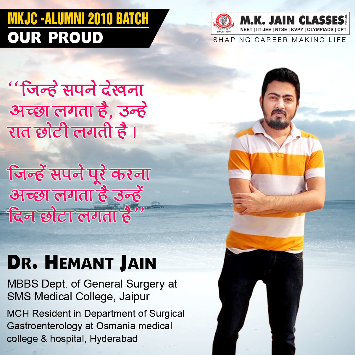 MKJC PROUD.Dr HEMANT JAIN. #MKJC- PRODUCED #800 MEDICOS & #16000 ENGINEER'S SO FAR.... Top choice of rankers. #Since 1986. #35 years of excellence. Mkjainclasses pvt.ltd udaipur. Download Mk Jain Classes app from Playstore or Join "100%Free Lectures" on our Youtube channel.Just subscribe now!Follow us on Facebook. For more information:-Visit Our Head Office🏤 Durga Nursery Road, Udaipur313 001 Udaipur, RajasthanFor Inquiries Call Us At📱0294-2421977 | 9414301104 | 7742082666 | 9214527350 | 7737000326 | 7742012666Toll-Free No.📞 08048890574 Email📧 mkjainclasses1@gmail.com | md_mkjc@yahoo.co.inDownload⬇ Our App From Play Store📱 For Exclusive Content:- MK JAIN CLASSESVisit🌎 http://www.mkjainclasses.com/ | http://www.mkjainclasses.in/ Our Other Branches:MKJC-SIP International Schooling:Nav Bharat Sr. Sec. School, Road No.8, Ashok NagarMKJC-Smart Education Centre:Hiran Magri, Sec-6, Main Road, Udaipur-313001MKJC-Smart SIP Schooling:Shiksha Niketan Sr. Sec. School, Paneriyon ki Madri, Sec-6, Hiran Magri, Udaipur#MKJainClasses #OnlineClasses #CoachingInstitute #MKJCSIP #Schooling #BestResults #Coaching #ExperiencedFaculty #Education #AdmissionsOpen #NEET #IITJEE #KVPY #NTSE #JET #ICAR #Olympiads #CPT