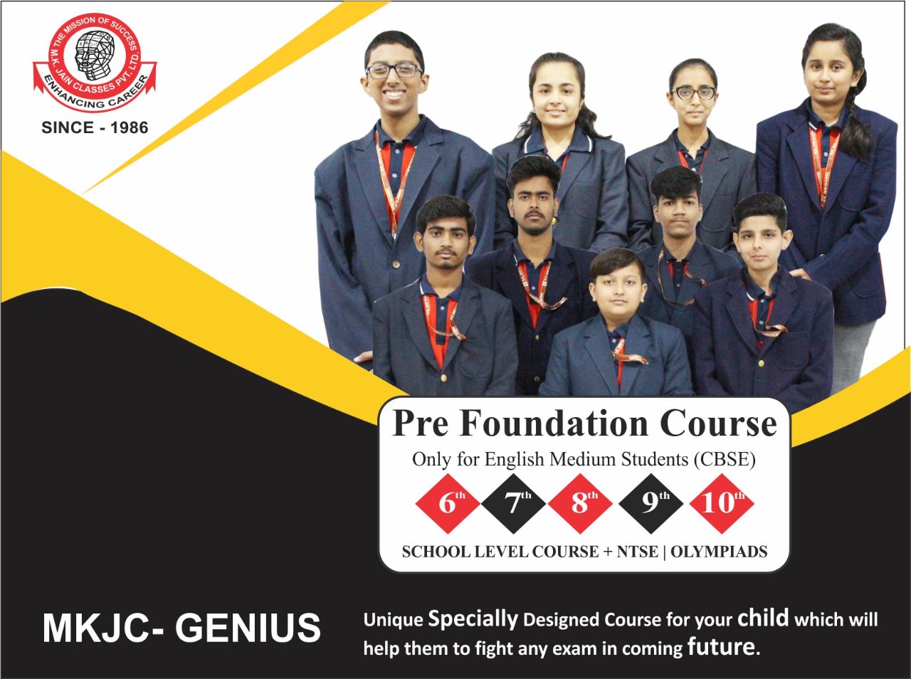 PRE FOUNDATION COURSE Only for English Medium Students (CBSE) For Classes 6th, 7th, 8th, 9th, 10th. School Level Course + NTSE | OLYMPIADS MKJC- GENIUS Unique Specially Designed Course for your child which will help them to fight any exam in coming future.